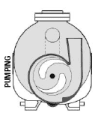 The diagram above shows the flow of water flowing in from the suction pipe. The impeller then rotates the fluid, building pressure within it and forces it out the discharge pipe ready to pump.